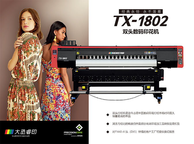 同时也有4或6色可选'广泛的墨水适应性,活性、涂料、分散、酸性墨水都适用