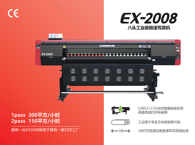 双头或四头可选,可实现56平方/时的高速打印(双头,2pass, 四头,4pass),对于当场交货订单的应对能力,为拓展打印业务商机提供保障。